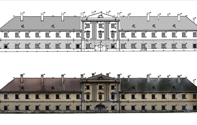 Izrađujemo nacrte postojećeg stanja pročelja uz primjenu 3D fotogrametrije i mjerenja totalnom stanicom, uz mogućnost detaljne razrade svih specifičnih elemenata na zgradama, crkvama i drugim objektima.